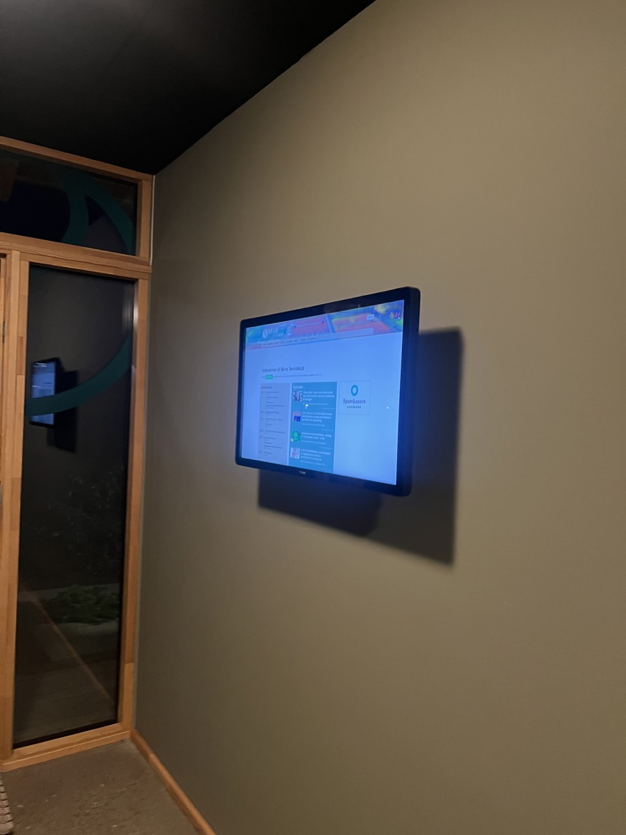 Mange medlemmer har nok undret sig over, hvad skærmen ved indgangen til klubhuset skulle bruges til. Nu er den sat i gang, og du kan læse nyheder, informationer, aktiviteter og booke baner og meget mere. Det er en, touch-skærm, så du skal trykke rundt på skærmen for at aktivere funtionerne. God fornøjelse.
